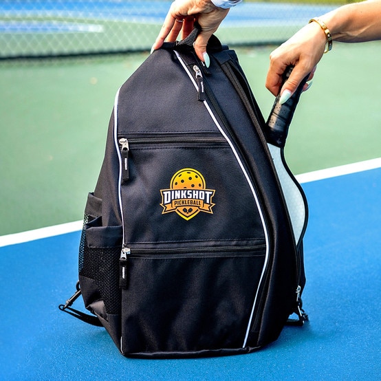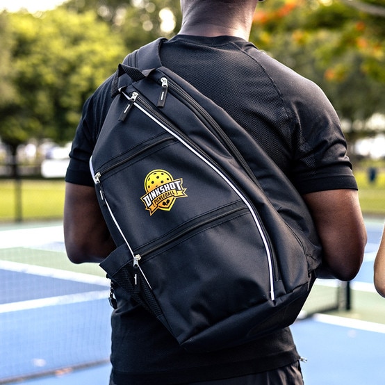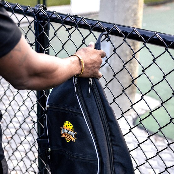 Wear as a shoulder sling or a backpack. Perfect for pickleball. Easily store multiple paddles, balls, keys, wallets and and a water bottle at an affordable price. Includes a fence hook to hang up your gear.